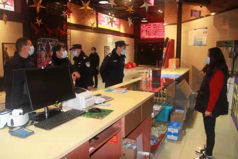 行動組還檢查督辦了各經營單位新冠肺炎疫情防控、安全生產工作,重點檢查了進入實體書店、網吧、影院等密集性公共場所的人員是否佩戴口罩,是否查驗健康碼、檢測體溫、做好人員登記,是否做好生產經營場所消毒,是否備齊消殺物資,是否設立安全生產責任制,消防器材是否定期更換等。同時,向經營門店發放張貼《沙洋縣春節返鄉防控細則》,以增強經營業主的疫情防控意識和風險防範能力。對於檢查中發現的消防設備過期、實名登記不嚴等問題,責令相關經營者立即整改。
