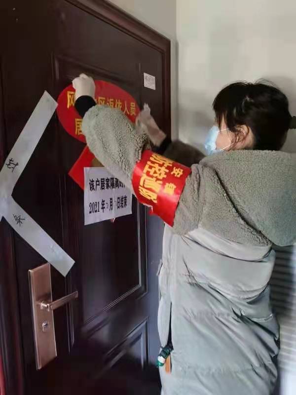 「抗疫」管控志願服務隊由居民小組長組成。她們24小時隨時待命,只要有返鄉人員進入小區,她們第一時間進行無縫對接,確保每一位返鄉人員都管控到位。無論是寒冷的晨曦,還是漆黑的夜裏都留下了她們手持封條和膠水奔走於小區樓道的身影,為居民購買生活用品、處理垃圾、心理疏導、帶領檢測核酸。尤其是全民核酸檢測,他們三天三夜沒有休息,卻毅然堅守在各自的工作崗位上。截止目前,尚有封閉居家隔離人員2799人。
