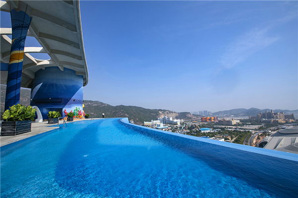 科學酒店無邊泳池觀賞橫琴長隆海洋度假區全貌。(龍少攝)