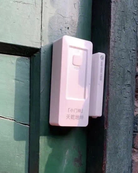 「小門神」被安裝在隔離點的房門上,實時監控大門開啓狀態。