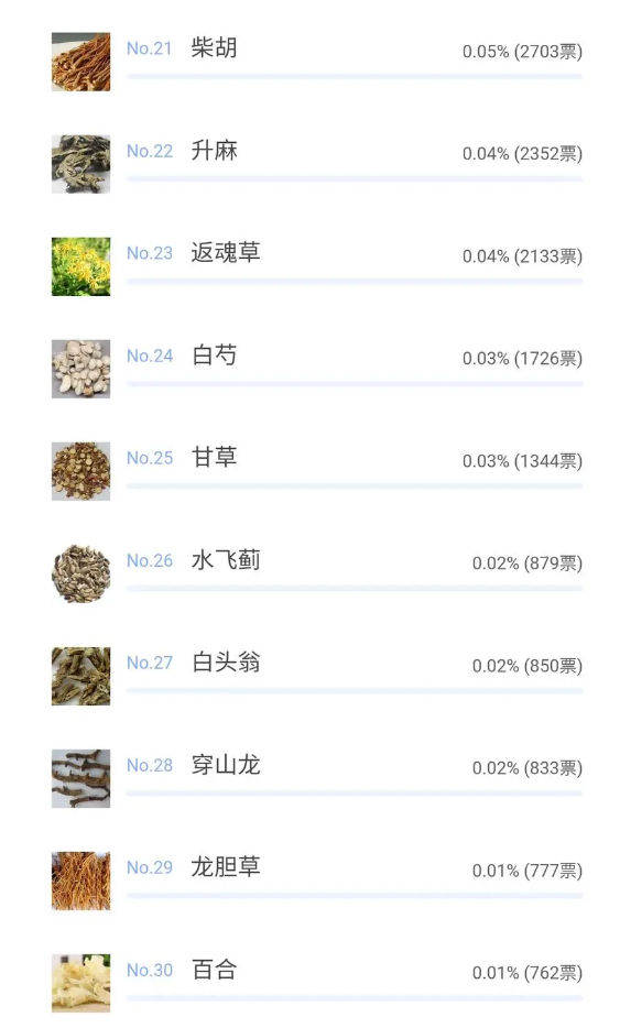 據了解,本次評選活動自2021年1月25日開始,於2月1日網絡投票結束。本次活動得到了全省各地農業農村部門,中藥材行業協會、相關企業、專業合作社和種植戶等社會各界的高度重視和大力支持,經過7天時間的踴躍投票,截止評選活動結束,網絡總投票量達到564.7萬票,黑龍江省道地藥材得到進一步展示宣傳,對全省中藥材產業大發展、快發展必將起到積極的促進作用。(記者 張曉磊)