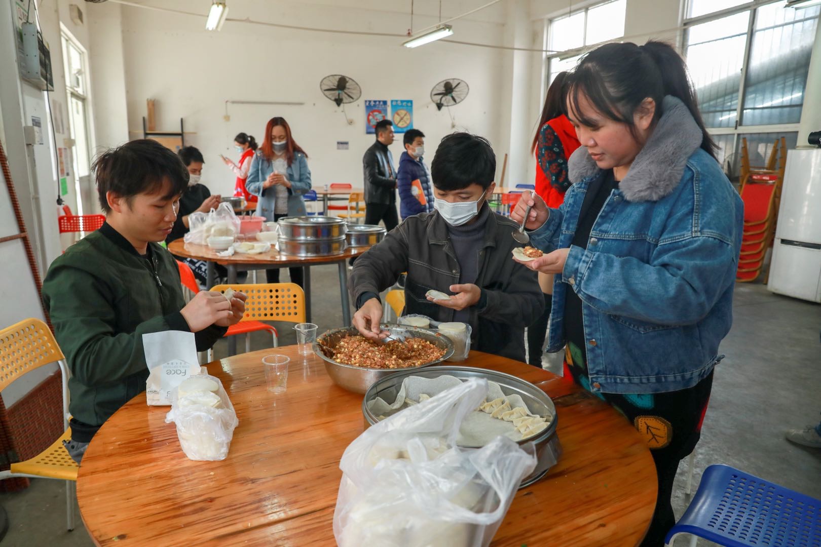 受疫情影響,高端無人機有限公司預計約有三分之一的員工選擇留深過年,為使員工感受公司大家庭的和諧與溫暖,1月30日上午,高端無人機黨支部在公司黨群服務站組織廣大員工開展了一場「迎新春 送溫暖」活動,現場50餘名員工共同包餃子,錄製新年祝福視頻,歡聲不斷,其樂融融,留深員工紛紛表示在異鄉感受到家鄉的濃濃「年味」。此外,公司還為每位員工發放了一份新春年貨禮包,用真情和實際行動讓員工主動留深、開心留深,既讓廣大員工體會到企業的關心與愛護,增強員工對企業的歸屬感,同時也為轄區疫情防控工作積極貢獻企業的力量,贏得了員工們的「點讚」。