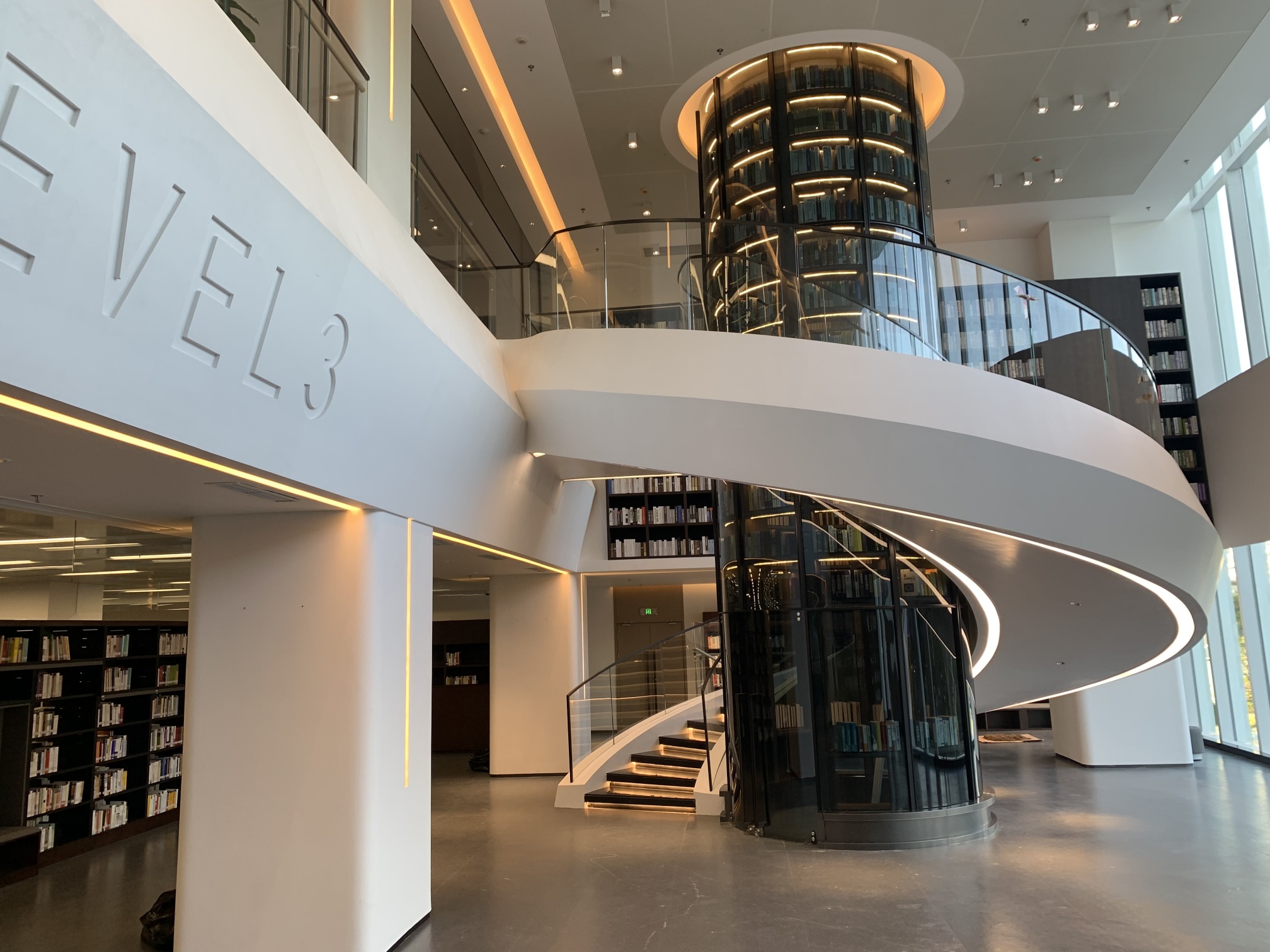 多功能學習室為需要個人空間的市民提供了舒適角落,學習室有一面風景優美的落地玻璃牆,為久坐學習的市民提供遠眺的絕好風景,環境佈置優美清新,配備電源插座,座位設計符合人體工程學原理,滿足市民「備考」「學習充電」的需求。