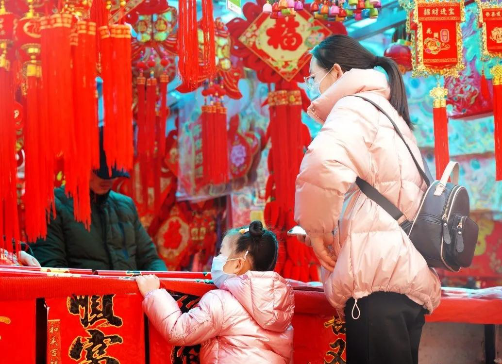 各種美好寓意的春聯,讓人目不暇接。各個攤位前,有跟着媽媽一起來買春聯的小朋友,也有挑選新年裝飾的老人家,年的幸福與渴望,就在這裝扮新年的儀式感里慢慢熱絡起來。