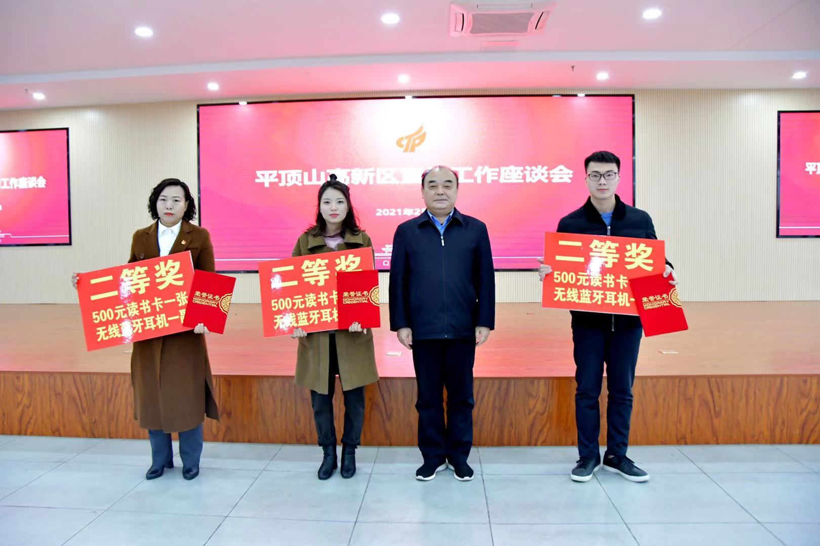 2月7日下午,河南平頂山高新區召開宣傳工作座談會。高新區黨工委書記凌兵奎,黨工委副書記劉亞,管委會副主任魯宏峰出席會議,高新區四板塊23個單位負責同志、通訊員等近60人參加會議。座談會由高新區黨工委副書記劉亞主持。