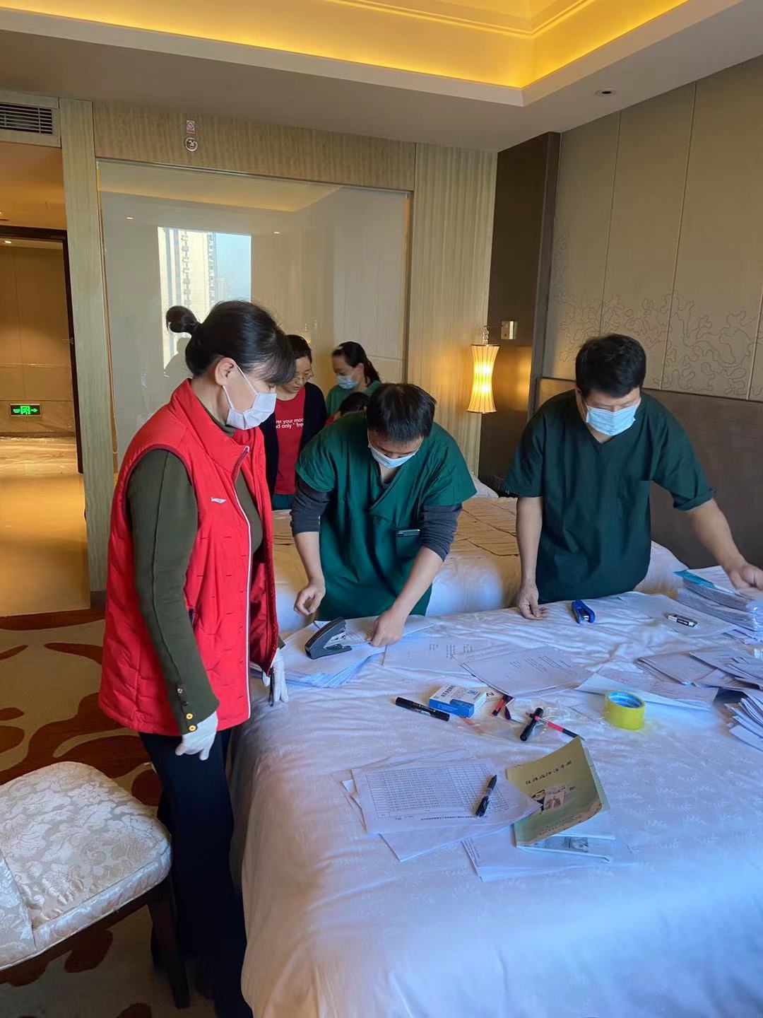在入駐隔離點後,她堅持最苦最累的活搶着干,最危險的活爭着干,帶動身邊的同志全身心投入防控工作。她舍小家為大家,在國外上學的唯一女兒,已經五年沒能回來過年,更是兩三年沒能見面。今年,孩子才回到哈爾濱,可是孩子還沒在家住上幾天,她就得知了組織部組織共產黨員深入隔離賓館進行疫情防控的通知,面臨親情和職責的考驗,她毅然選擇的奔赴抗疫一線。在工作期間,每當孩子打電話說起想媽媽、問起何時才能團聚時,她都強忍淚水,告訴孩子,只有戰勝疫情,才能保住每個家庭的安寧,才能真正平平安安、歡歡喜喜地過年,才能無憂無慮地團聚。