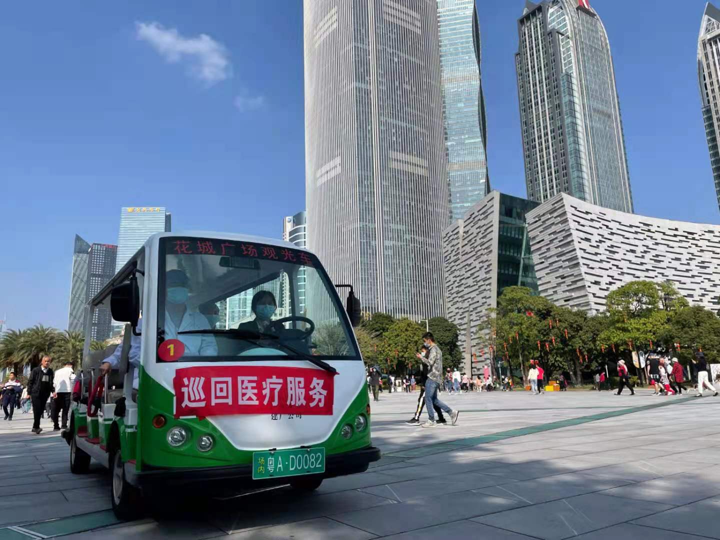「除了做好園博會的醫療保障以外,我們在花城廣場外也設立了配置有醫護人員4名的固定醫療點。針對花城廣場面積廣闊,人流密集的情況,我們還配備了巡回醫療服務車,讓醫護人員通過來回巡邏的形式擴大醫療服務覆蓋半徑,讓更多市民能夠享受我們的醫療保障服務。」花城廣場被譽為廣州「城市客廳」,佔地面積約56萬平方米,是廣州市最大的廣場,在春節期間來花城廣場旅遊的旅客絡繹不絕。天河區衛健局負責人表示,值班的醫護人員藉助巡回醫療服務車,一改以往被動駐點為市民提供服務的方式,通過不定時的巡邏,除了可以讓更多市民能夠享受醫療服務以外,巡回醫療服務車的醫護人員還能提醒市民正確佩戴口罩,並且提醒扎堆的市民保持社交距離,達到加強疫情防控宣傳的效果,持續鞏固來之不易的抗疫成果。據了解,除了上述疫情防控點以外,獵德街以及冼村街也在各自轄區內設有38個點,投入保障力量130人。