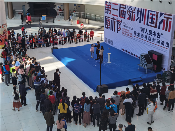 連續三場的第三屆深圳國際魔術節——“到人民中去”魔術進社區慰問演出2月16日在深圳市少年宮大廳落下帷幕,記者在現場看到,三場演出吸引家長及孩子們逾千人次觀看精彩紛呈、令人歎為觀止的魔術“大餐”,讓留深的孩子們春節度過了一個愉快而又美好的的魔幻時光。