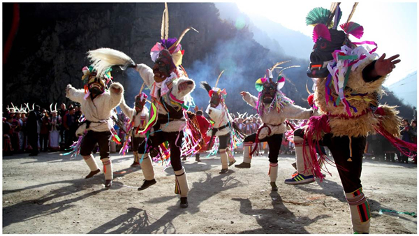 「跳曹蓋」是綿陽市平武縣境內聚居的白馬藏人的一種古老的祈福驅邪祭祀活動,是祭祀山神的重大慶典,涉及所有白馬民族村寨,具有強烈的民族與地方特色。每年的正月各寨子都要「跳曹蓋」祭祀山神,祈禱來年風調雨順、無病無災。(張寶杉 姜筱緯)