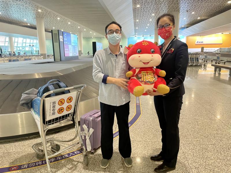為防止旅客錯拿相似行李,南航行李查詢室特製「大福牛」行李防錯拿提示牌,深受旅客歡迎
