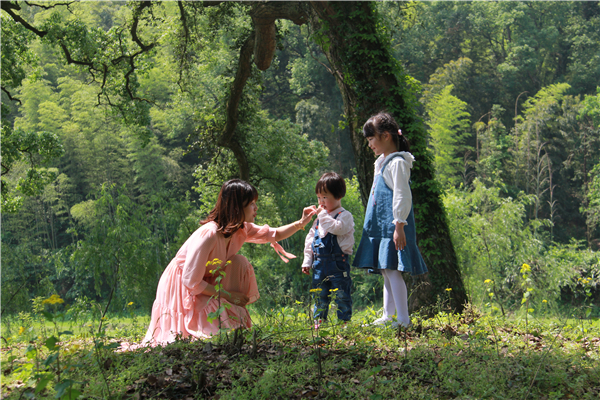 2019年5月3日,遊客在新余市分宜縣防里古樟群遊玩