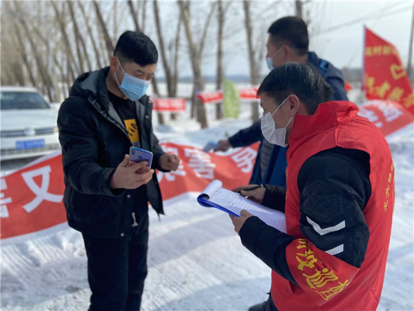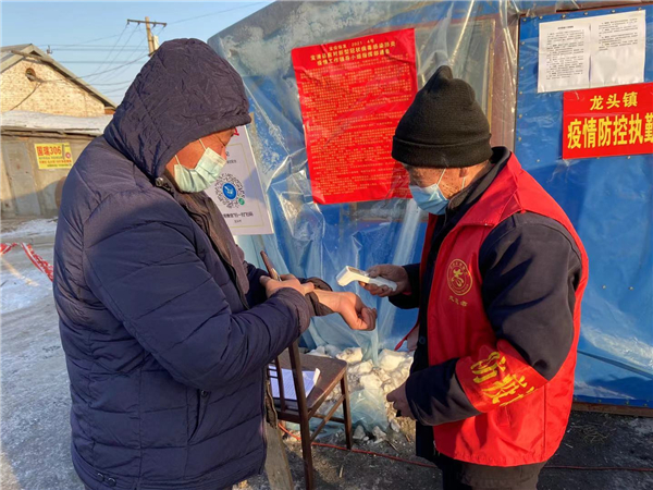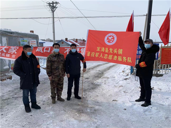 在龍頭鎮,像王東一樣堅守一線的退役軍人志願者還有很多,他們挺身而出,每天奔波在街頭巷尾,駐守在村口卡點,漫天大雪也從未阻止他們志願服務的熱情,成為戰「疫」一線一道獨特的風景線。