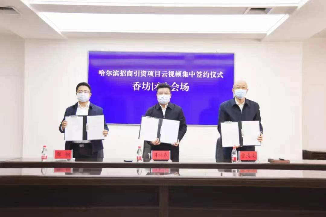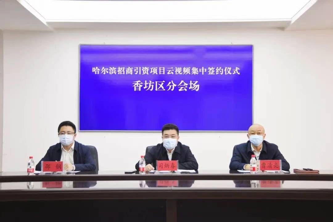 2月28日,哈爾濱市舉行重點招商項目雲視頻集中簽約活動。香坊區委副書記、區長司炳春,區委常委、常務副區長曹清亮,副區長邵鋼出席活動並分別簽署6個項目的合作協議,項目總投資額181.12億元。