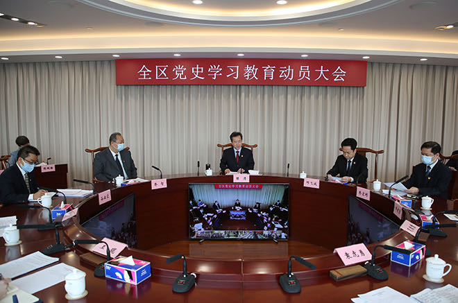 會議要求,全區各級黨組織要提高思想站位、周密部署安排、精心組織實施,高標準高質量完成學習教育各項任務,確保黨史學習教育取得紮實成效。要加強組織領導,各級黨委(黨組)要承擔主體責任,全面動員部署、細化工作舉措、加強督促指導,迅速掀起學習熱潮,黨委(黨組)書記要認真履行好第一責任人職責,親自抓、帶好頭,以更高標準、更高要求學黨史、講黨史、懂黨史、用黨史,示範帶動全區黨員幹部切實做到學有所思、學有所悟、學有所得;要樹立正確黨史觀,引導廣大黨員幹部群眾樹立正確的歷史觀、民族觀、國家觀、文化觀,更好地正本清源、固本培元;要切實為群眾辦實事、解難題,引導推動廣大黨員強化公僕意識、為民情懷,不斷提高人民群眾獲得感、幸福感、安全感;要創新方式方法,開展特色鮮明、形式多樣的學習教育,堅決克服形式主義、官僚主義;要加強宣傳引導,開展多角度、全方位、多頻次的深度宣傳,切實為黨史學習教育營造良好輿論氛圍;要堅持兩手抓兩促進,使學習教育每項措施都緊貼中心、服務大局,防止學習和工作「兩張皮」,確保相互促進、相得益彰。