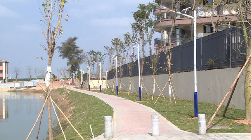記者走訪閘門涌兩岸,見到河道北岸已經完成了行人路鋪設和綠化樹木、草皮的種植,河道景貌初步成型。河道南岸的泥土已經推平,即將進入綠化植物種植、行人路鋪設工作。據了解,閘門涌位於闍西村內,東西走向,西與東江南支流交匯,全長400米,是闍西村內重要的河道,對緩解港口大道銀通路口、周邊村小組的內澇有着重要的作用。