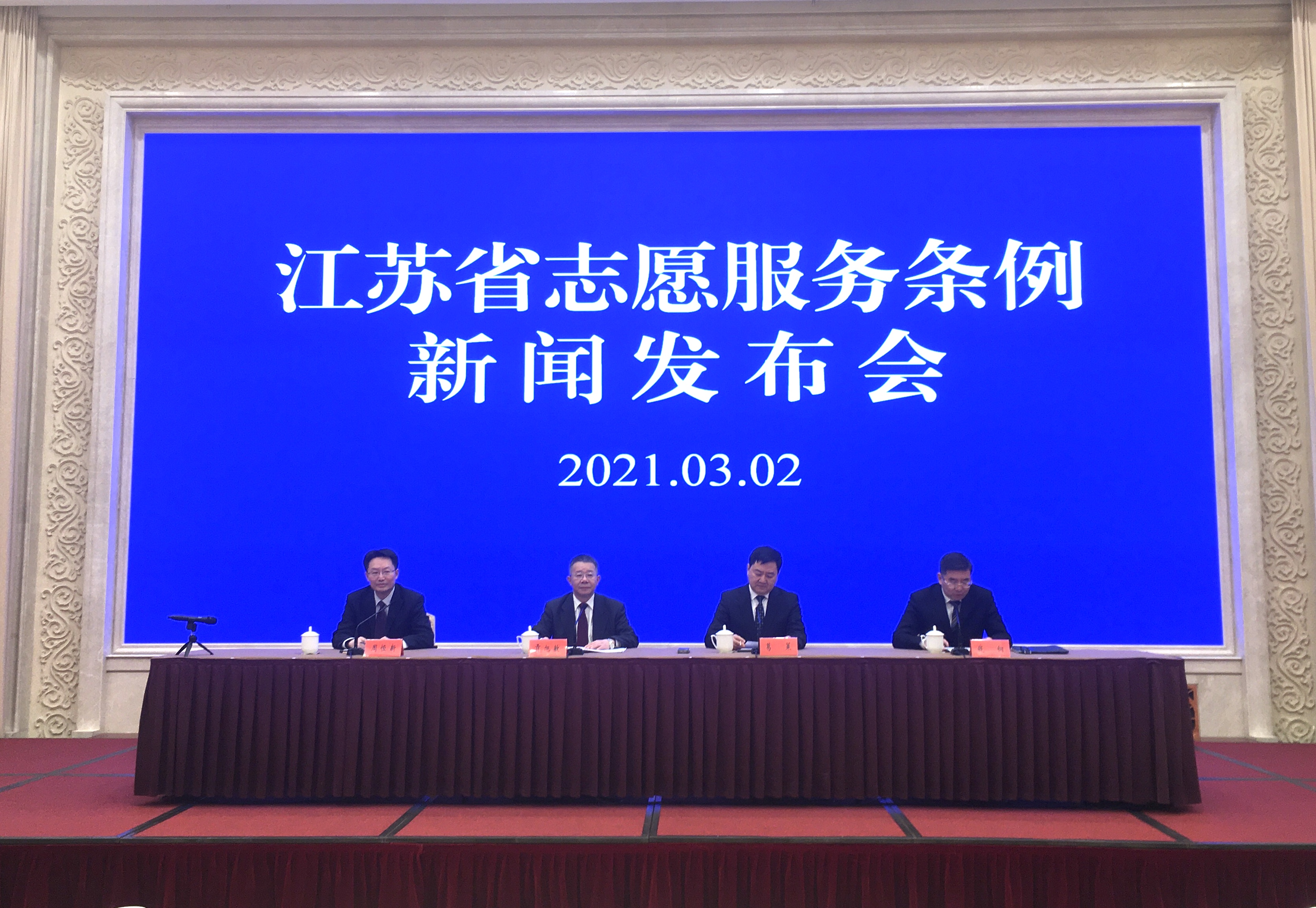 3月2日,江蘇省委宣傳部舉辦新聞發佈會,介紹1月15日江蘇省十三屆人大常委會表決通過的《江蘇省志願服務條例》。