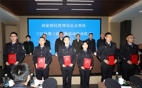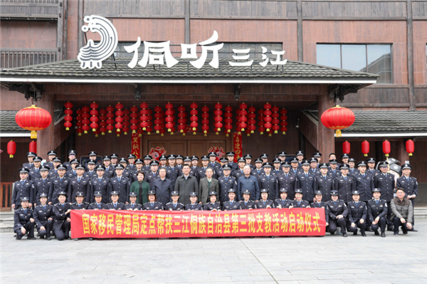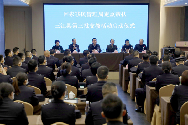 3月2日,國家移民管理局定點幫扶廣西三江侗族自治縣第三批支教活動啟動儀式在三江縣城舉行。本次支教活動,國家移民管理局上海、江蘇、浙江、廈門、山東、廣州、深圳、珠海、廣西九個邊檢總站共選派70名警察到三江侗族自治縣富祿、獨峒、古宜、洋溪、八江、良口、同樂、老堡等8個鄉鎮的36所中小學從事英語教學工作,全力解決三江農村中小學英語教師缺員難題,力促侗鄉義務教育均衡優質發展。