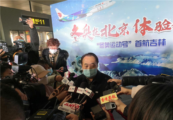 3月4日,由吉林省文化和旅遊廳、吉林市人民政府舉辦的冬奧主題飛機「冬奧運動號」首航吉林歡迎儀式在長春龍嘉機場隆重舉行。北京冬奧組委殘奧會部部長楊金奎,北京冬奧宣講團專家、殘奧會世界冠軍劉玉坤,吉林省文化和旅遊廳黨組書記、吉林省委宣傳部副部長張樹斌,吉林省文化和旅遊廳副廳長張文廣,以及北京殘聯現役冬殘奧會教練員、運動員等參加儀式。歡迎儀式上,吉林省文化和旅遊廳副廳長張文廣向主題航團團長贈送團旗並與主題航團領隊交換紀念品。隨後,「送冬奧祝福 帶吉祥回家」系列活動啟動。