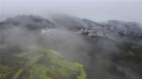 俗話說“一場春雨一場暖”。這幾天,春雨時斷時續,但升溫的趨勢沒受到影響,春天的氣息也越來越濃郁。在安徽省黃山市歙縣杞梓裏鎮的坡山村,瀑布雲等自然景觀伴隨著茫茫雲海時隱時現,宛若一幅幅水墨畫卷,如夢似幻。