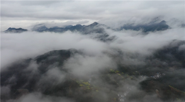 陽春三月,雲海在春風的吹拂下,或淡或濃,或慢悠悠經過,或飛快向遠方追趕。有時,雲海如白色輕紗,在山峰間舞蹈;有時,雲霧纏繞在半山之間,像是系在山腰間的一條條白色玉帶;有時,雲海出沒在山巒中,宛若大海中的無數島嶼,時隱時現於波濤之上,再加上散落在群山深處的徽派民居,如夢似幻,氣勢不凡。(記者 吳敏 通訊員 淩利兵 方四清 方劍青)