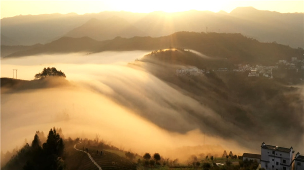 歙縣杞梓裏鎮坡山村是一個高山村落,獨特的地理位置讓這個美麗山村一年四季都有雲海出現,但春天的雲海不同於其他季節,經過一冬的洗禮後,春天的雲海更加清新脫俗、富有詩意。