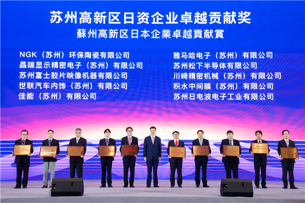 活動現場,蘇州高新區對10家榮獲「卓越貢獻獎」、20家榮獲「突出貢獻獎」的日資企業進行了表彰;全省首個中日綠色產業基金發佈,基金總規模20億元,首期規模5億元,將進一步加強綠色產業科技創新和政策創新;蘇州高新區「商貿通」中日國際數據通道開通,將持續提升日資企業跨境溝通便捷性;蘇州高新區日資中小企業服務中心以及蘇州高新區中日友好門診揭牌,並舉行了中日韓(江蘇)產業合作示範園區授牌儀式。