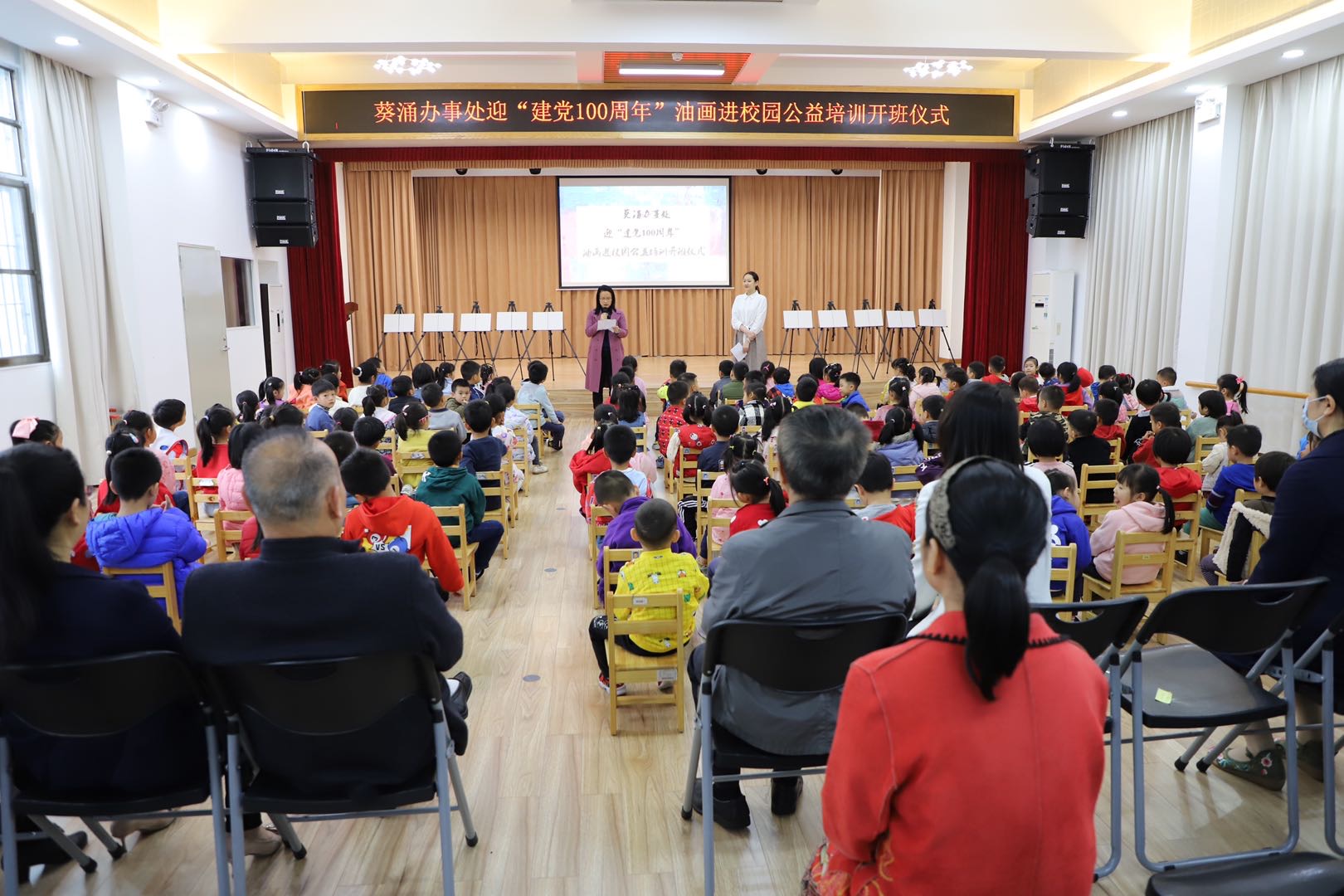 近日,深圳市大鵬新區葵涌中心幼兒園不時傳來陣陣天真浪漫的笑聲,100多名小朋友端端正正地坐在油畫畫板前,認真聆聽老師的講解。這是由葵涌辦事處舉辦的「油畫進校園公益培訓」活動啟動儀式。葵涌辦事處相關負責人、葵涌中心幼兒園園長及老師們,與小朋友坐在一起,共同參與了這場別開生面的開班儀式。
