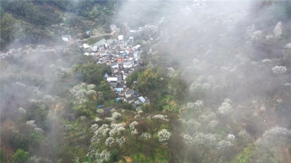 從空中俯瞰,漫山遍野、千樹萬樹的李花如雲似雪,沿著山勢伸向遠方,這些綿延山頭的李花就像是潔白的婚紗,把這個美麗的小山村打扮成一個新娘,楚楚動人、儀態萬方。近看,田間地頭、村頭寨尾、溪旁路邊、山上山下,無一不見李樹的身影,盛開的李花挨挨擠擠地簇擁著,組成了這香的世界、花的海洋,一如覆蓋了團團白雪,婀娜多姿,暗香浮動,與徽派相映成趣。不少市民和遊客慕名而來,感受著人在畫中游的愜意與美好。