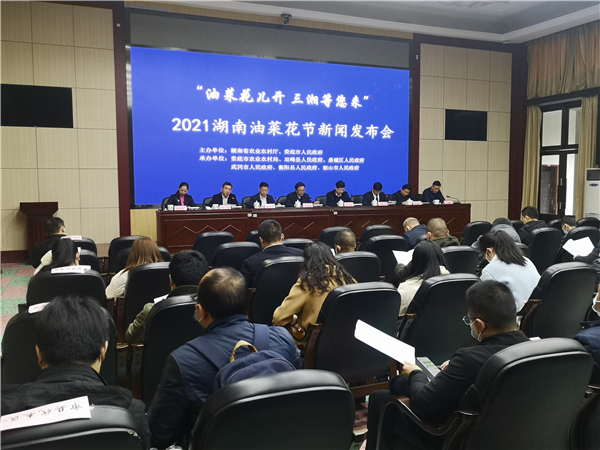 3月10日,記者從湖南省農業農村廳在長沙召開的「油菜花兒開三湘等您來」2021湖南油菜花節新聞發佈會獲悉,2021湖南油菜花節將於3月16日在婁底市雙峰縣鎖石鎮主會場舉辦啟動儀式,並在衡陽縣、武岡市、常德市鼎城區、韶山市等4地開設分會場。本屆油菜花節從3月10日持續至4月10日,將推出5大主體活動,分別為油菜花節啟動儀式、系列活動發佈、最佳油菜花景點發佈、技術推廣展覽和產品展示等。