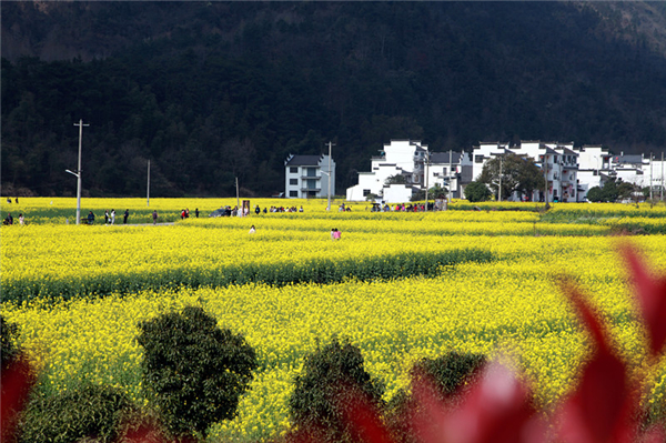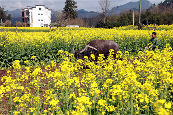 陽春三月,山花爛漫。中国道教名山齊雲山腳下的南坑村旁油菜花在陽光下分外妖嬈,令遊客留連忘返。村民們有的在耕地施肥,有的鋤草培苗,有的還把家裏的農特產品拿來向遊客售賣。一年之計在於春,一幅“人勤春早”的田間美景圖展現在橫江之畔。