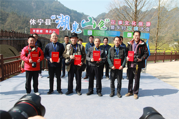 3月14日,安徽黃山市休寧縣“湖光山色”花事文化旅遊暨鄉村勸農大會在南坑村舉辦。來自全國各地的攝影愛好者、自駕遊客一起參加大會開幕式。