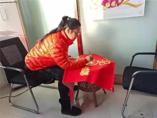 王欣在鑫潤糧食(食品)有限公司製作文化宣傳品
