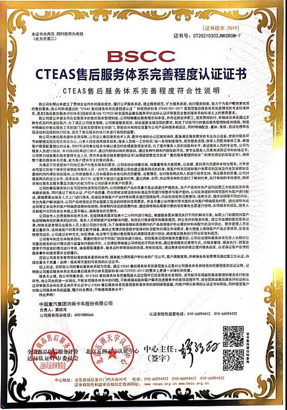 近日,中國重汽集團濟南卡車股份有限公司榮獲「CTEAS售後服務體系完善程度認證七星級(卓越)」認證證書。該證書由全國商品售後服務評價達標認證評委會與北京五洲天宇認證中心聯合頒發,是對中國重汽現有服務體系能力的國家級認定。
