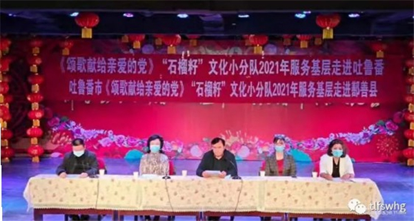 3月16日,由自治區文化和旅遊廳主辦,新疆藝術劇院、自治區文化館承辦,各地州文化館協辦的《頌歌獻給親愛的黨》「石榴籽」文化小分隊2021年服務基層活動走進吐魯番,暨吐魯番市「石榴籽」文化小分隊《頌歌獻給親愛的黨》服務基層活動全面啟動,高昌區、鄯善縣兩地同時舉辦了啟動儀式,隨後自治區文化館的老師們為來自鄉鎮的200餘人進行培訓,為「石榴籽」文化小分隊2021年服務基層活動開好頭、起好步!