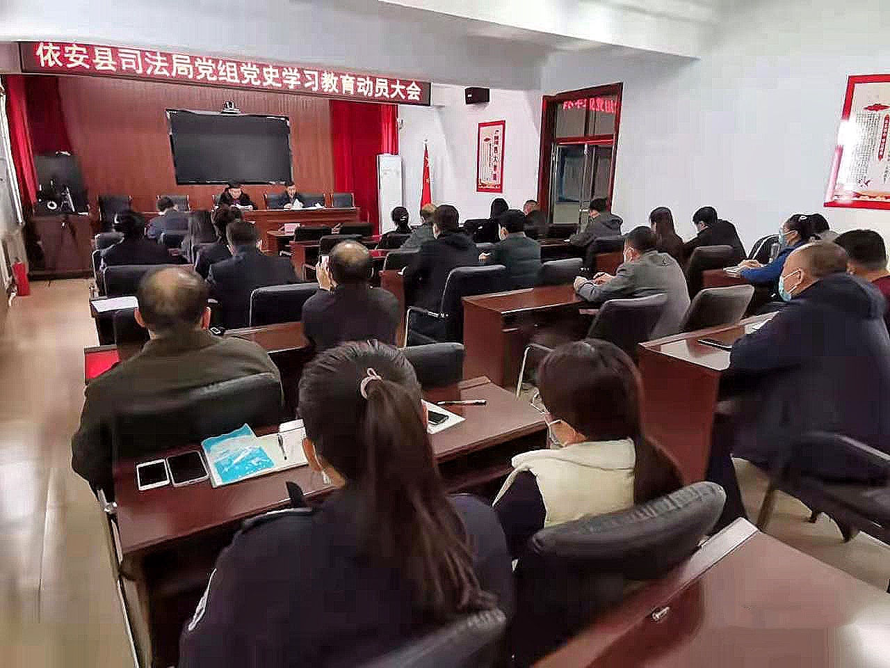 暨3月10日召開全縣黨史學習教育動員大會之後,依安縣各單位迅速行動,陸續召開動員大會。3月11日,依安縣司法局黨組召開黨史學習教育動員大會。會議認真傳達依安縣黨史學習教育動員大會精神,調動全體幹部職工學黨史的積極性和主動性。通過召開動員大會,使司法系統全體工作人員進一步認識黨史教育的重要意義,確保黨史學習走深走實、落地見效。
