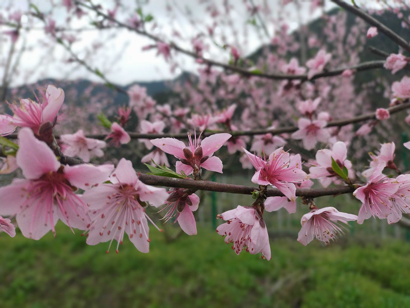 山上層層桃樹花,雲間煙火是人家。3月15日,春光明媚,在素有燈籠村稱號的皖南休寧縣五城鎮上岩村旁的顏公山十裏古道邊,2018年開春種下的3000多棵桃樹已在牛年的春風中嶄露芬芳,在翠綠的細葉映襯下開始長出燦爛嬌媚的桃花。近看,那一朵朵桃花輕盈地立於枝頭,競相舒展著粉嫩的身姿,擁抱著溫暖的陽光,令人心曠神怡。
