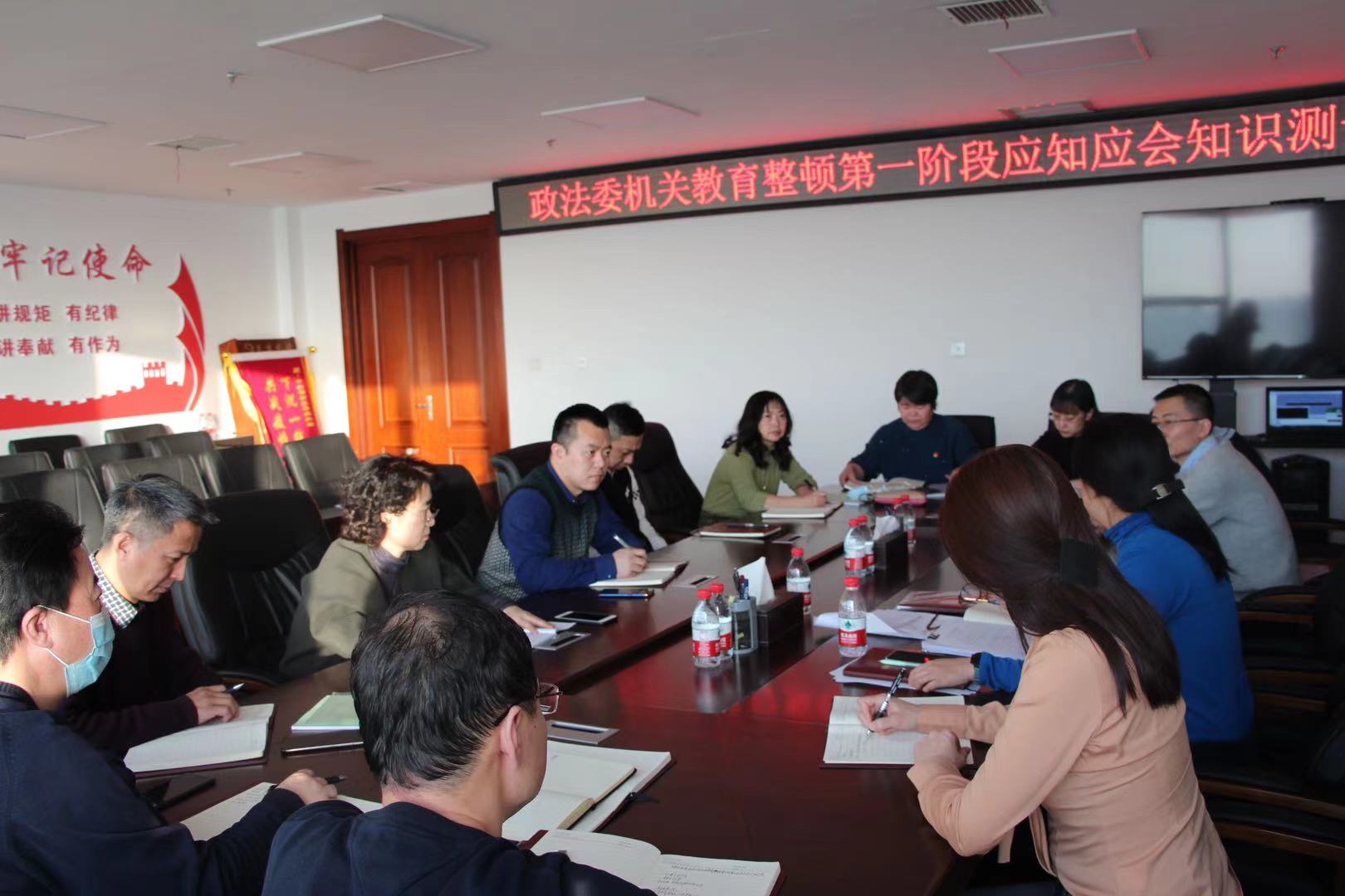 哈爾濱市香坊區委政法委紮實開展政法隊伍教育整頓工作,動員引導全體幹部自學、深學、精學,並採取定期測試的形式,提高學習教育工作成效。3月16日組織開展第一次測試活動,哈爾濱市香坊區委常委、政法委書記、區教育整頓領導小組副組長黃湘龍以普通黨員身份參加學習接受測試,全委在職幹部、政府僱員共19人參加答題活動,通過閉卷測試推進學習教育走深走實。