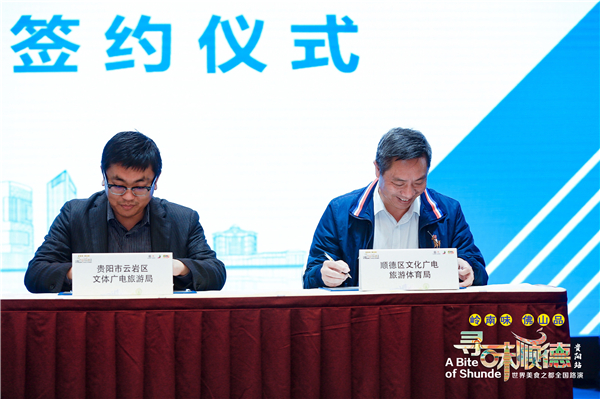 與此,貴陽市雲岩區文體廣電旅遊局和佛山市順德區文化廣電旅遊體育局簽訂了兩地文旅交流合作的戰略框架協議,貴州省餐飲行業商會和順德區飲食協會也簽訂合作協議,達成合作共識。相關協議將促進貴陽和順德兩地文化、旅遊、經貿的全面交流。(記者 許入介)