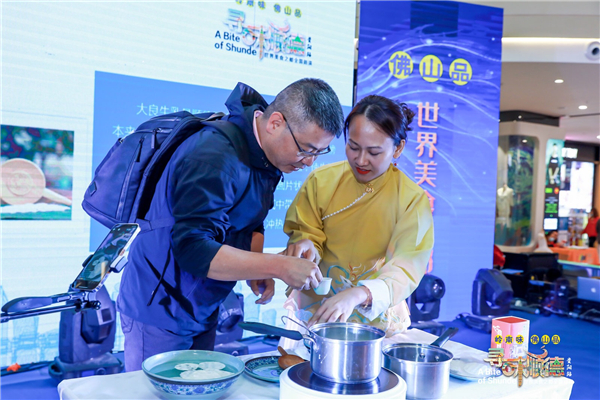 漁面、牛乳、香雲紗、大良魚燈……順德作為世界美食之都,美食自然是本次推介活動的主角。貴陽市民在品嘗美食的同時,還可以欣賞順德名廚現場炮製順德美食,以及梁球鋸職校烹飪表演團隊的同學們現場進行的刀工展示——將蘿蔔切成漁網,他們精湛的廚藝、刀工讓貴陽市民驚嘆連連,享受了一場味覺和視覺的雙重盛宴。