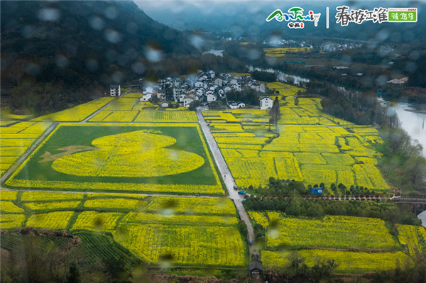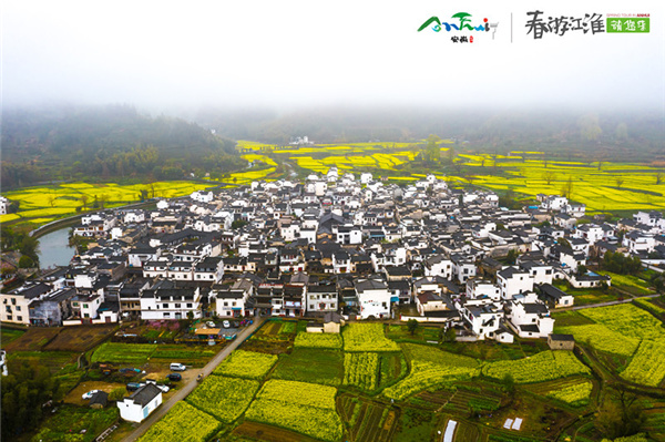 徽州多山少平地,油菜花依著山勢錯落,順著村莊綿延,藏在古徽州粉牆黛瓦的後面,映在新安江平靜清澈的水上,是自然而然的風韻,盡在你不經意的抬眼間。