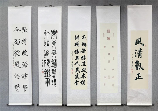 100年來,中國共產黨緊緊依靠人民,艱苦卓絕,砥礪奮進,為中華民族騰飛發展作出了偉大的貢獻,此次「迎百年、學黨史、銘黨恩」警營書畫展,以翰墨丹青抒發公安民警對黨的無比熱愛與忠誠,激勵全體民警不忘初心、砥礪前行,從書畫作品傳遞出的愛黨、愛國、愛民情懷中汲取強大精神力量,感悟神聖職責使命,以更高的標準、更飽滿的熱情投入到工作實踐中,推動黨史學習教育的開展。