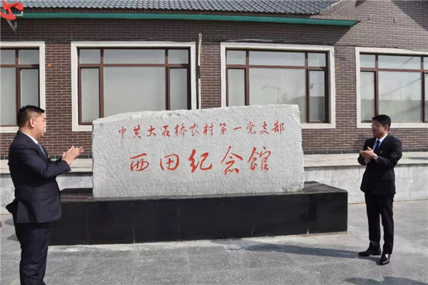 3月25日,在中共大石橋農村第一黨支部西田紀念館揭牌儀式上,大石橋市委書記王立偉,市委副書記、市長韓文志為紀念館揭牌。