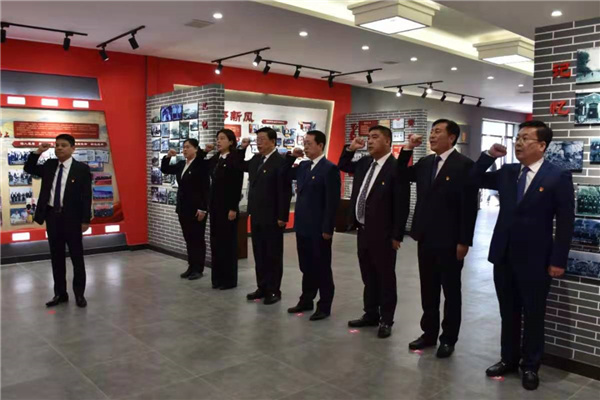 大石橋市委常委、宣傳部部長張燕主持揭牌儀式。儀式結束後,參加活動人員共同參觀了大石橋農村第一黨支部西田紀念館。在紀念館內,面對黨旗,王立偉帶領大家重溫入黨誓詞,回顧革命歷史、銘記奮鬥歷程。