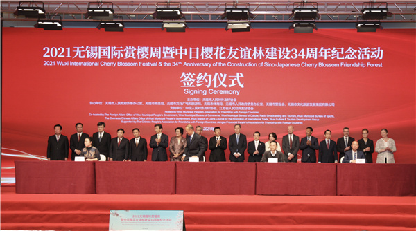 2021無錫國際賞櫻周暨中日櫻花友誼林建設34周年紀念活動在江蘇無錫太湖之濱舉辦,46個合作項目在開幕式上簽約