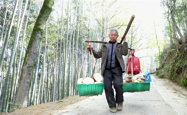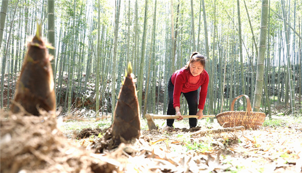 3月26日,安徽歙縣徽城鎮問政村“問政貢筍”喜豐收,村民方冬葉在挖筍銷市場。