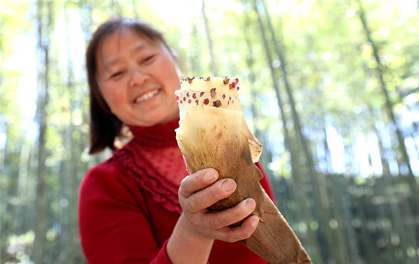 方冬葉家今年2畝多竹園春筍可產竹筍1000多公斤,單項收入超萬元,全村300多戶家家都有竹園,2000多畝竹園春筍給村民帶來好收成。