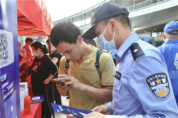 工作人員在現場指導群眾下載反詐騙APP