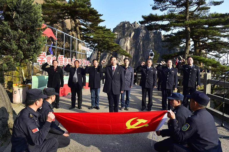 今年以來,安徽黃山風景區迎客松黨委深入學習貫徹習近平總書記在全國黨史學習教育動員大會上的重要講話精神,推動黨史學習教育走深走實,在領導片區社會治理中注重發揮“頭雁”作用。3月26日,黃山風景區黨工委委員、管委會副主任、迎客松黨委書記程光華帶領迎客松黨委班子一行八人在迎客松前面對鮮豔的黨旗重溫入黨誓詞!表達了要立足本職、鼓足幹勁、勇於擔當,為黨的偉大事業奉獻終身的決心!