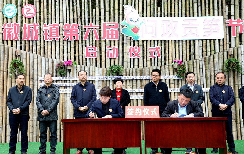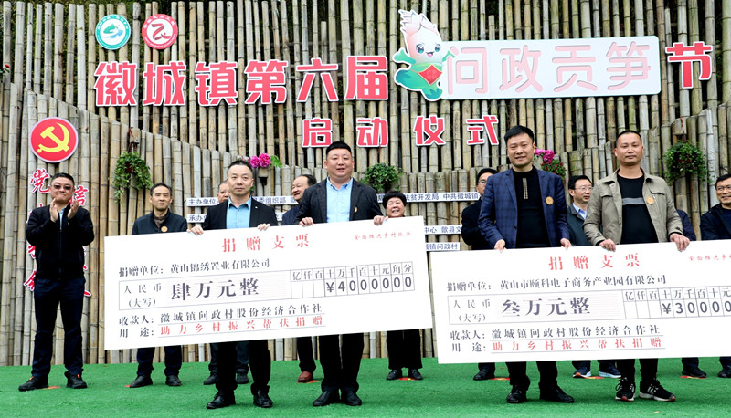 以節為媒引來黃山市3家龍頭企業與徽城鎮問政村股份經濟合作社簽約,2家企業現場捐贈鄉村振興幫扶資金,表彰了全鎮3A級信用戶。(記者 吳敏 通訊員 吳建平)