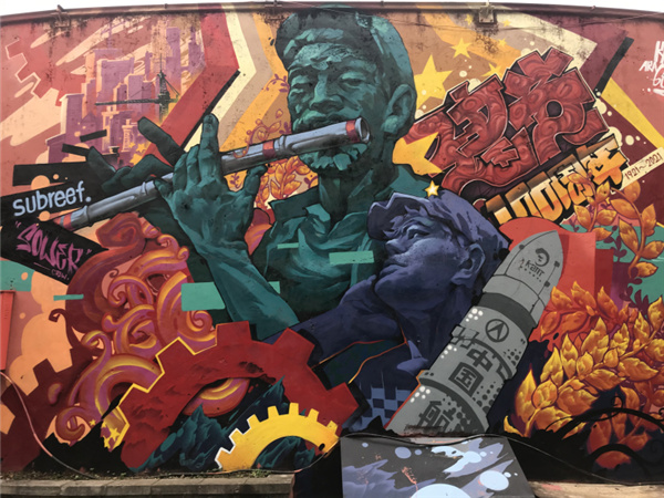 據了解,桂林七星區創新文化傳承模式,突出地方文化特點,鼓勵年輕人在特定的建築和區域進行塗鴉,促進文旅融合。桂林七星區文化體育和旅遊局主要負責人介紹,七星區「後浪潮」塗鴉文化牆旨在打造桂林市首個最美的塗鴉文化牆。塗鴉文化牆總長度100米,總面積450平方米,12位來自全國各地的塗鴉藝術家齊聚桂林,他們用藝術的角度創作了14幅以「黨的百年歷史、國家的發展變化」為主題的作品,以「新青年」的角度感受身邊的變化,通過塗鴉藝術呈現人民幸福和國家強盛的美好畫面。